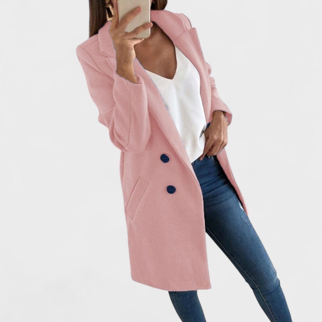 Puha pamut kabát klasszikus reverekkel és tiszta vonalakkal, amely feldobja minden kombinációt — a farmernadrágtól a munkahelyi öltözetig. A egyenes szabás és a csípő közepéig érő hossz elegáns megjelenést kölcsönöz, míg a praktikus oldalsó zsebek és a két gombos záródás biztosítja a funkcionalitást és a könnyű viseletet. Tökéletes átmeneti időszakokra és mindennapi eleganciára.