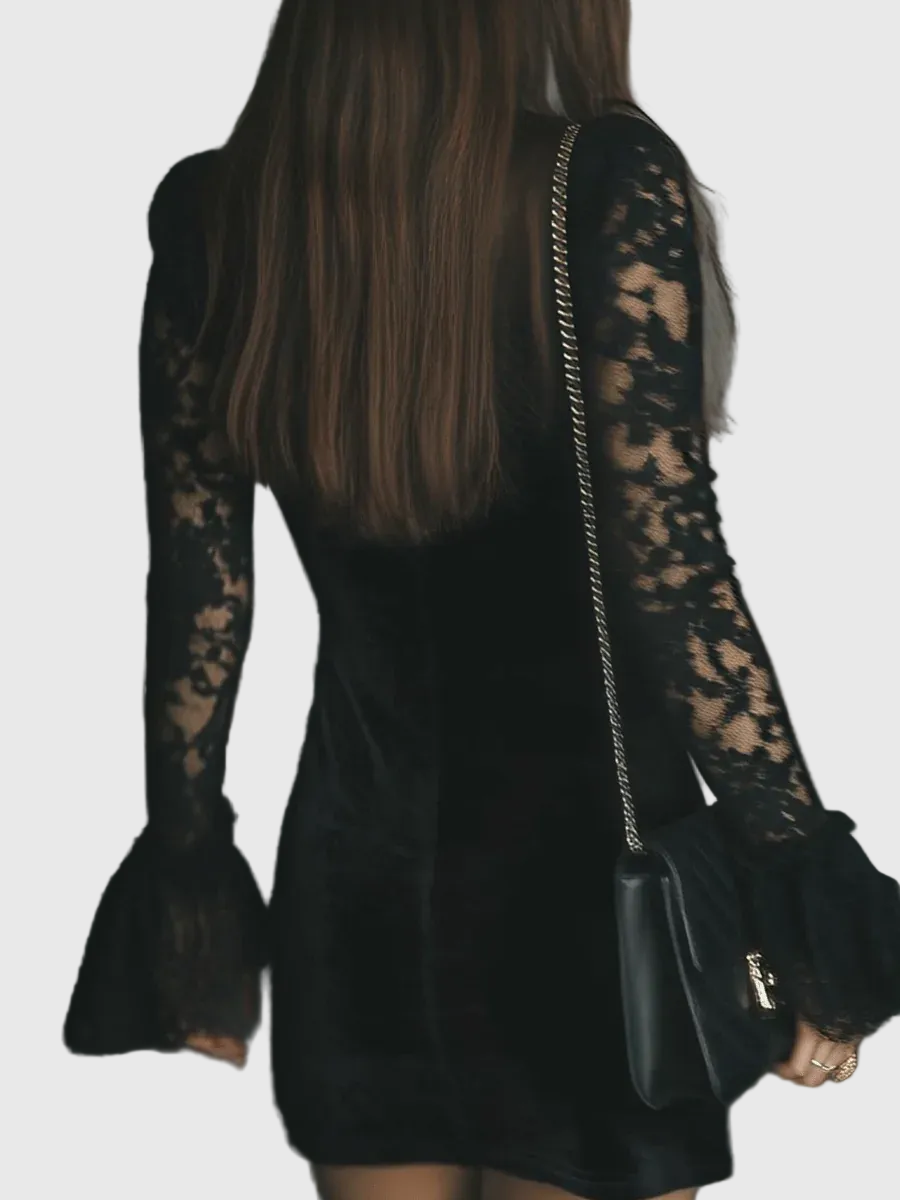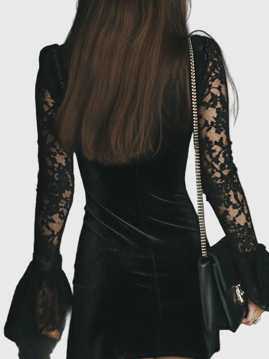 Luna - Mini ruha bársonyból és csipkéből Luna