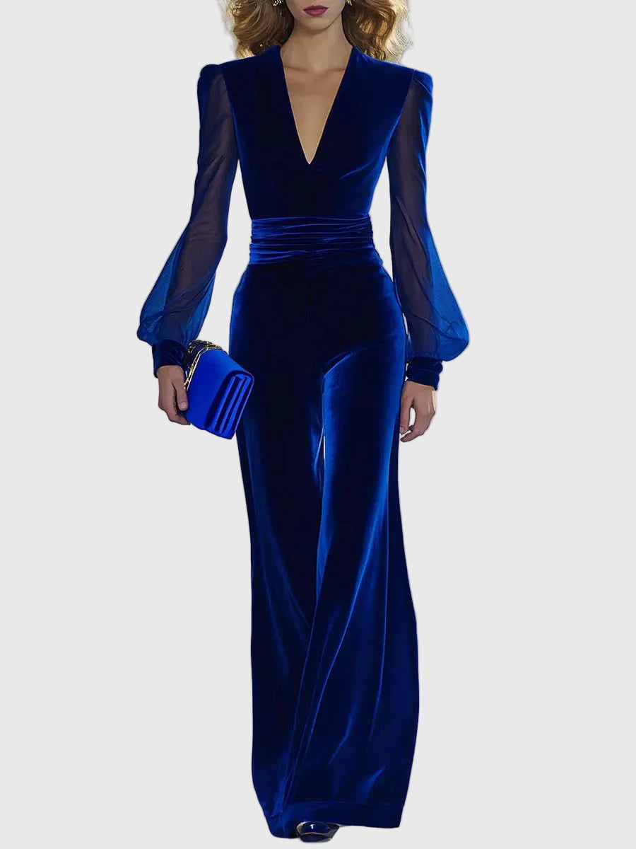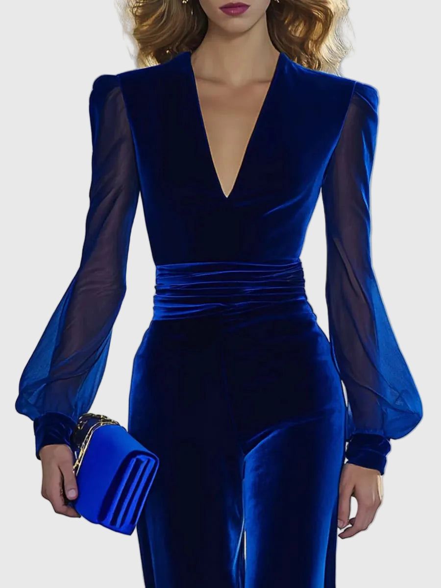 Bársonyos Overáll Mély V-nyakkal és Sifon Ujjal