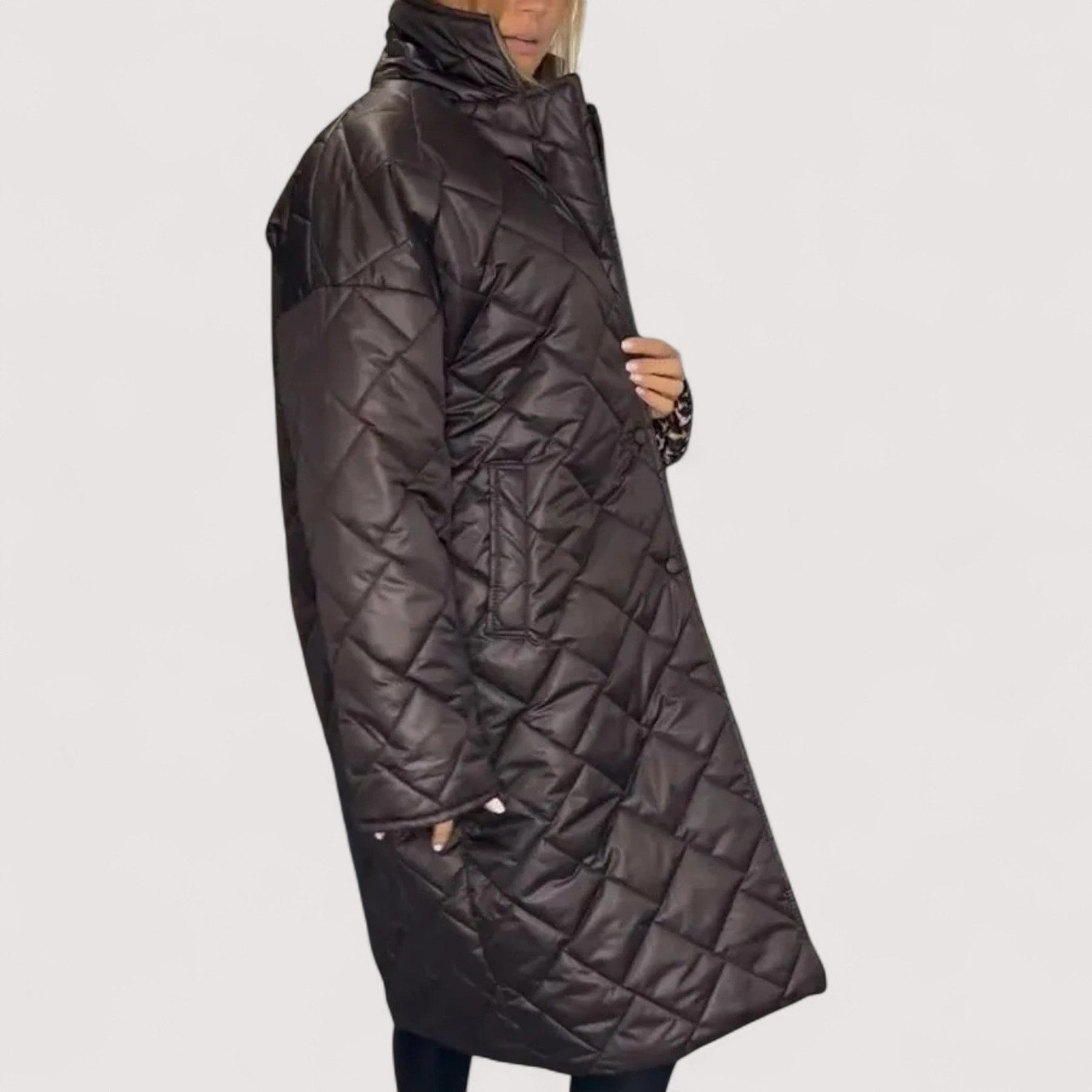 Ez a változtatható steppelt kabát melegen ölel, és 2 az 1-ben dizájnjával pillanatok alatt minimalista eleganciát vagy vad stílust kínál. Élvezze a meleget és a stílust kompromisszumok nélkül.