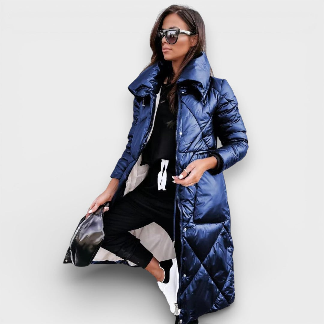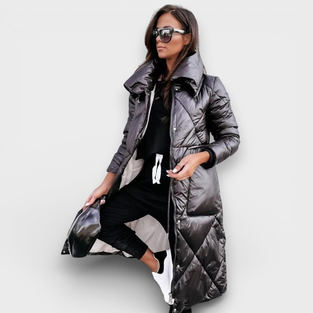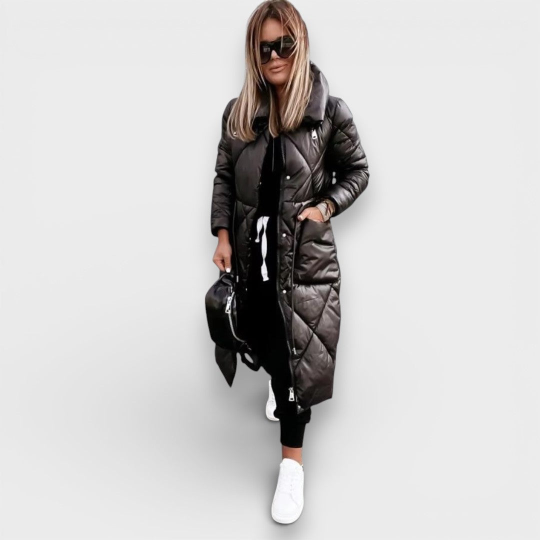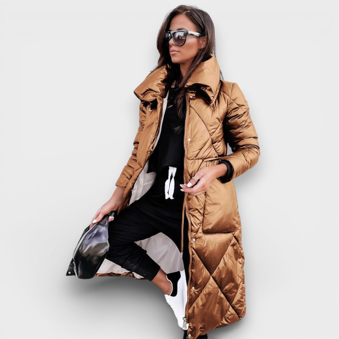 Rumjana kabát ideális választás a Szlovákiában élő nők számára, akik elegánsan szeretnének kinézni és kényelmesen érezni magukat a téli időszakban. A puffos, magas gallérjával, könnyű, de meleg töltésével és hosszú, elegáns sziluettjével ötvözi az esztétikát és a funkcionalitást, így készen állsz, hogy szembenézz bármilyen időjárással, és remekül nézz ki. A hideg téli szelek ellen védelmet nyújtó dizájnjával és a kényelmet biztosító anyagával a Rumjana tökéletes társ a téli mindennapjaidhoz. Az anyag kiváló minőségű, biztosítva a tartósságot és a kényelmet.