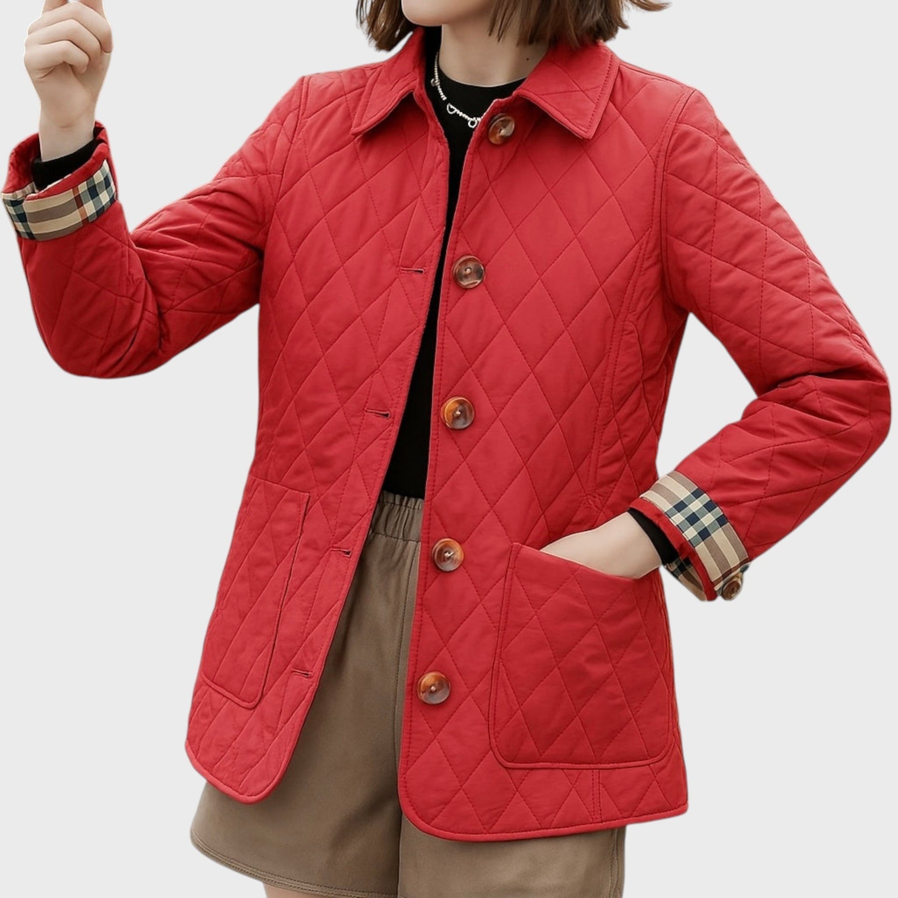 Időtlen dizájn: A klasszikus gyémánt minta és a mandzsetták jellegzetes részletei olyan megjelenést teremtenek, amely soha nem megy ki a divatból.