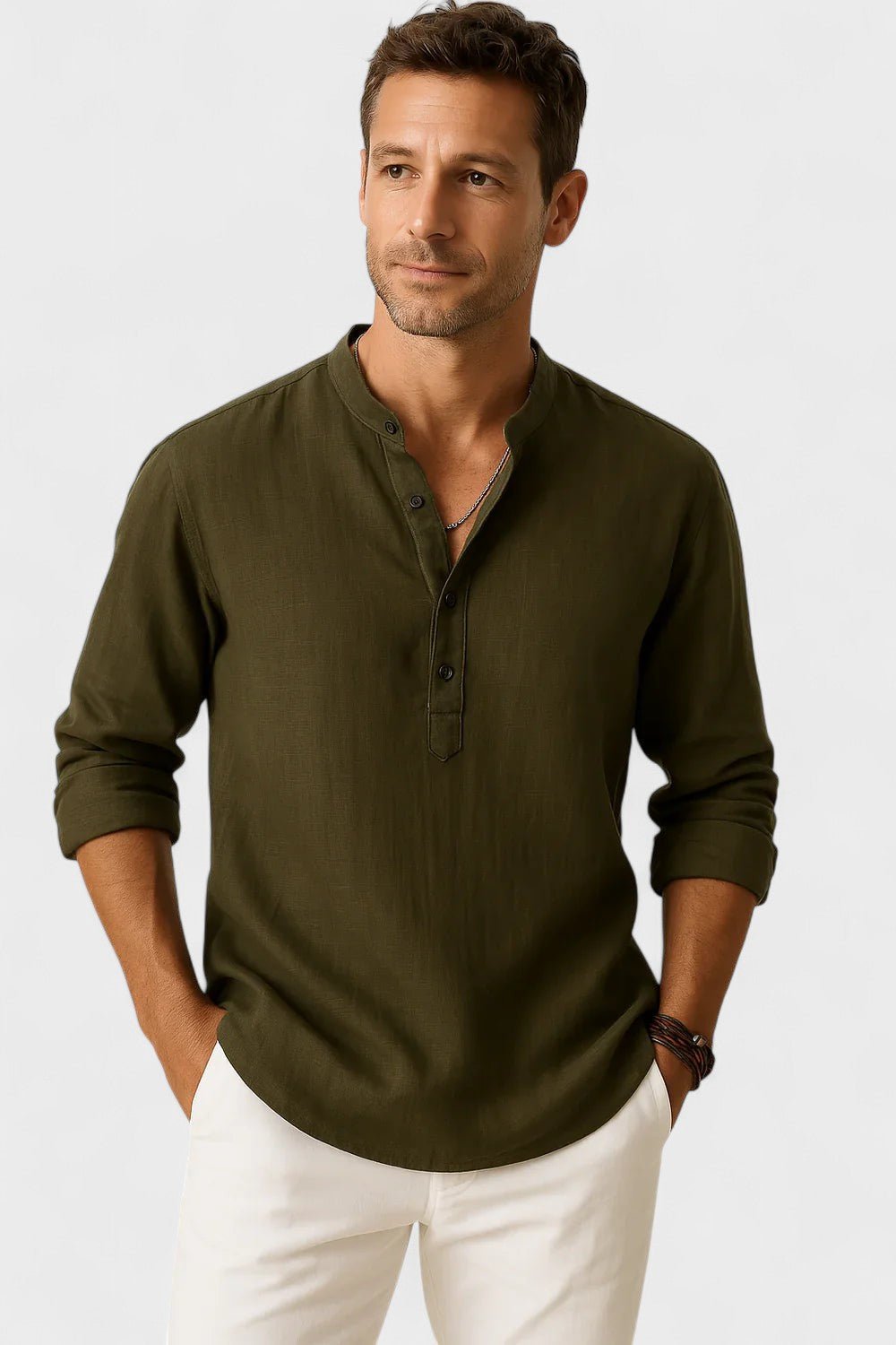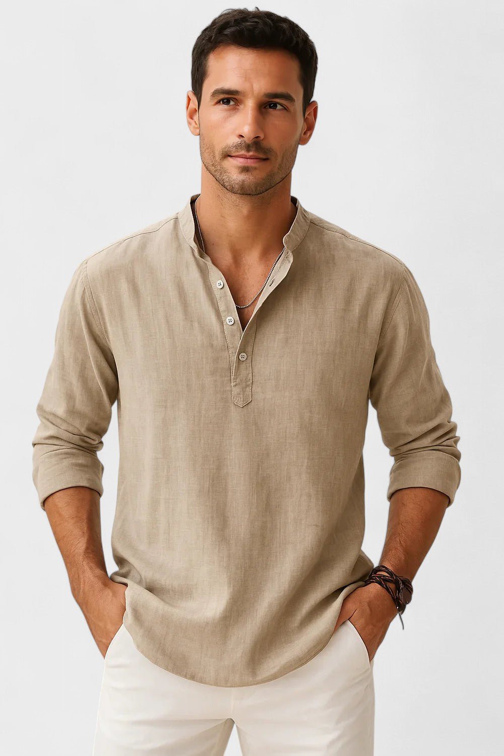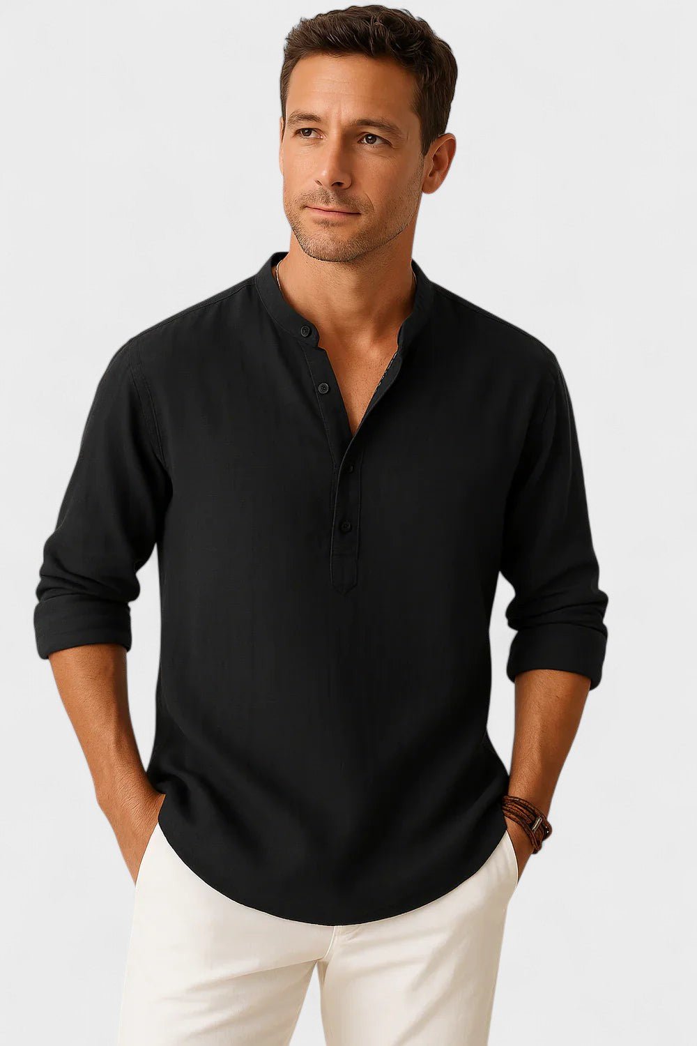 • Időtlen stílus: A mandarin gallér és a részben gombos zárás modern és elegáns hatást kölcsönöz, ami sosem megy ki a divatból.